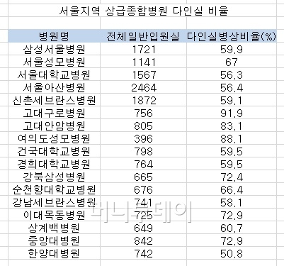 서울지역 대학병원의 병상 가동률은 80~90% 수준이다. 입원 환자들에게 인기가 많은 다인실의 경우 병상 가동률이 이보다 높아진다.