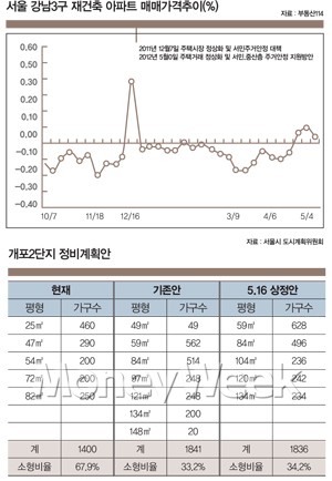 썰렁한 분위기가 계속되던 중 일주일 만에 극적인 반전이 나왔다. 서울시가 지난 16일 제9차 도시계획위원회를 열고 재건축 이후 소형주택비율을 30% 이상 확보하는 것을 조건으로 강남구 개포동 개포주공 2·3단지 정비계획안을 승인한 것.