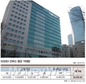 코덱스 인버스는 시장이 하락하면 수익을 내는 종목으로, 기초지수의 일별 수익률을 역방향으로 추적하는 ETF(상장지수펀드)다. 에프앤가이드에 따르면 지난 1월 한달 간 코덱스 인버스의 20일 평균 거래량은 2021만4065주이다. 2월 평균 거래량은 1742만8826주, 3월과 4월은 각각 1502만7462주와 1249만2952주인 것으로 조사됐다.