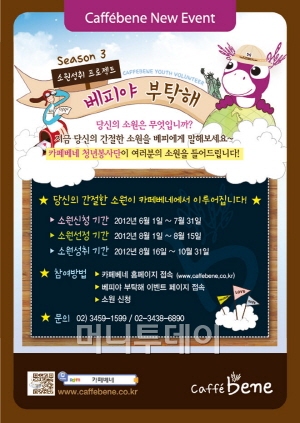 복합문화공간을 추구하는 프랜차이즈 커피전문브랜드인 <카페베네>의 고객 소원성취 프로젝트 '베피야 부탁해 시즌3'가 2012년에도 계속된다.