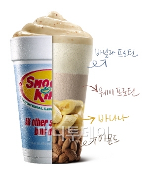 웨이프로틴이 함유되어 라지 사이즈 한잔으로 일일 단백질 섭취량의 최대 35%까지 섭취할 있어 운동 후 마시기 적합하다. 또한, 식이섬유가 풍부한 바나나와 불포화 지방산을 함유한 아몬드가 들어있어 탄수화물, 단백질, 지방 등 영양소를 고르게 섭취할 수 있고, 식사대용으로도 적합하다.
