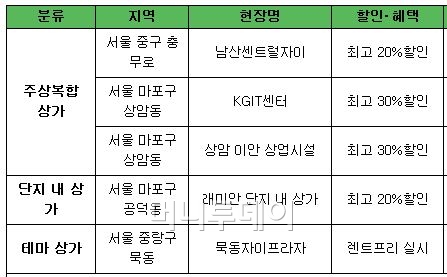 이외에 서울시 마포구 상암동에 위치한 상암DMC 내 상암KGIT센터 상업시설, 이안오피스텔 상업시설이 각각 30%의 할인혜택을 제공하고 있다.