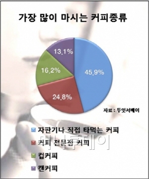 우리나라 성인 과반수가 하루에 한두 잔의 커피를 마시고 있으며, 주로 마시는 커피는 자판기 커피나 직접 타서 먹는 것으로 나타났다.