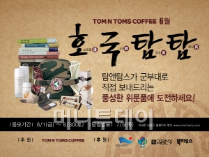 탐앤탐스 ‘호국탐탐’은 오는 6월 30일까지 응모할 수 있으며, 당첨자는 7월 5일 홈페이지와 페이스북에서 발표될 예정이다.