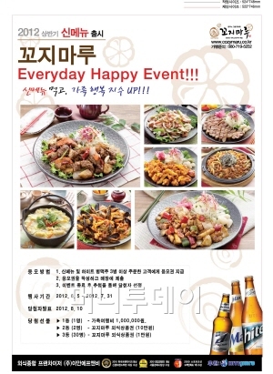 치어스는 신메뉴 출시를 기념해 가족여행권등 푸짐한 경품으로 “신메뉴 먹구, 가족 행복지수 UP"이벤트를 펼치고 있다.