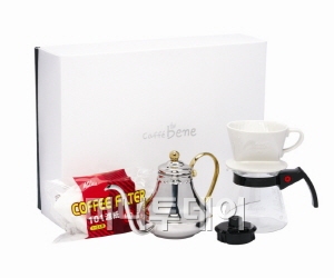 베네콜드컵과 함께 카페베네 전 매장에서 판매하는 핸드드립선물세트도 새롭게 출시한 제품. 가정에서도 손쉽게 드립커피를 즐길 수 있도록 드리퍼, 서브, 필터, 알라딘포트 등 4종으로 구성되었다.
