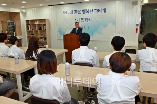 SPC그룹(회장 허영인)이 ‘SPC 내 꿈은 행복한 파티쉐’ 과정을 개설하고 11일 강남구 수서동 한불제과제빵학원에서 제 1기 입학식을 가졌다.