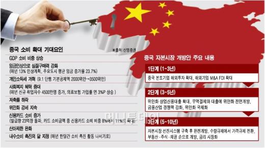 김선영 신영증권 연구원은 "(중국 당국이) 공식적으로 자본시장 개방 일정을 발표한 것은 당시가 처음"이라며 "앞으로 수년이 중요한 전환기가 될 것"이라고 기대했다. 그는 "중국은 실물거래와 연관된 경상계정은 개방하지만 자본(투자)계정은 공개하지 않았다"며 "자본계정이 오픈되는 등 개방을 시작하면 성장통도 예상된다"고 말했다.
