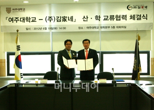 외식 프랜차이즈 전문기업 ㈜김가네(회장 김용만)가 19일 오후 여주대학교(총장 정태경)와 산학협동 협정을 체결했다.