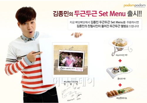세트메뉴 주문시에는 김종민의 친필 사인이 들어가 있는 두근두근 앨범(Feat 길미)을 증정한다.