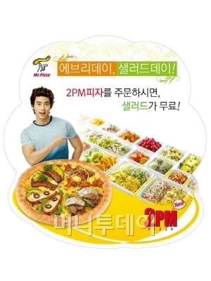 ‘에브리데이샐러드데이’는 매장에서 ‘2PM피자’를 주문하면 미스터피자의 인기 메뉴인 샐러드바 2인 무료 이용 혜택을 제공하는 프로모션이다.