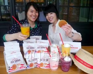 또 '아이스샌드'는 촉촉한 케이크 사이에 다양한 맛의 아이스크림과 상큼한 과일잼, 달콤한 초콜릿 시럽이 들어가 있는 프리미엄 디저트로 손에 들고 먹기 간편한 장점 이 좋다.