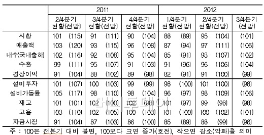 지식경제부, 제조업 경기실사지수 2012년 2분기 현황과 3분기 전망 발표