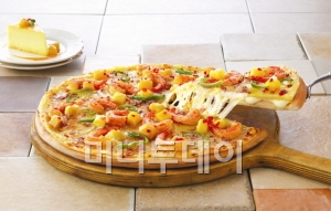 ‘치즈케이크샌드’ 피자는 매콤한 케이준 소스로 맛을 낸 통새우와 망고 토핑을 올려서, 피자 전체에서 풍성하고 다양한 식감을 느낄 수 있는 것이 특징이다.