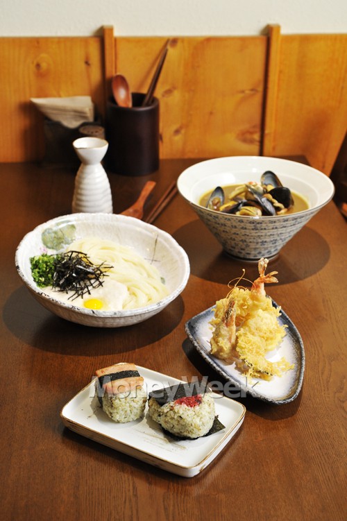 산마우동은 각종 성인병 예방과 위장에 좋다는 산마를 갈아 넣고 노른자를 띄워 마치 계란 반숙을 올려놓은 모양새다. 도쿠리에 따로 내주는 쯔유를 면에 적절히 부어 휘휘 저어 먹으면 된다. 마를 갈아 걸쭉한 농기가 있다. 카레우동 역시 카레와 우동이 만난 별미다. 홍합, 꽃게 등의 해산물을 넣고 끓인 묽은 카레에 담겨져 나와 시원하면서도 화한 맛을 느낄 수 있다.
