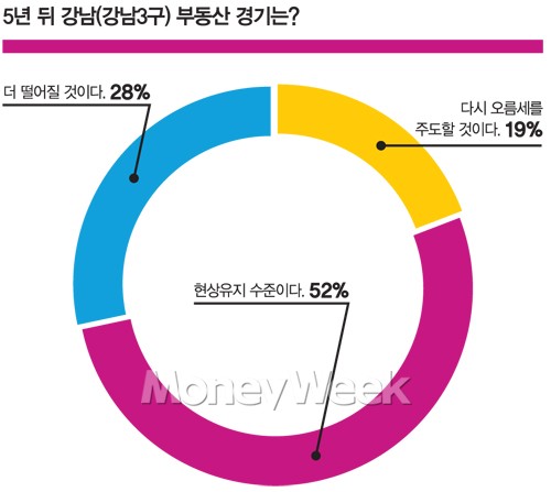 강남3구가 과거의 영화를 다시 누릴 것이라는 전망도 있었다. 국제문 대우증권 서초동지점 PB팀장은 "사무실, 빌딩의 수요 핵심은 강남에 그대로 안착할 것"이라는 이유로, 최성호 우리은행 PB사업단 차장은 "강남 진입 수요가 꾸준히 있다"는 이유로 5년 뒤에도 강남3구가 여전히 주목받는 지역이 될 것으로 내다봤다.