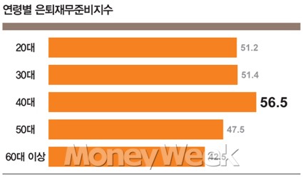 아울러 국내 퇴직 및 금융연구소들은 50대의 노후자금 준비율이 40%대 중후반 정도에 불과해 노후생활에 필요한 자금을 절반도 충당하기 힘들 것으로 분석하고 있다.