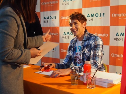 종합외식기업 아모제(www.amoje.com)가 운영하는 오므토토마토 신림점에서 전속모델로 활동 중인 줄리엔 강의 팬 사인회가 열렸다.