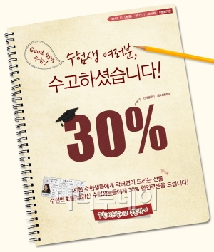 수능 관련 제품들과 함께 수험생들을 대상으로 한 전문몰의 이벤트와 할인 행사도 다양하다.