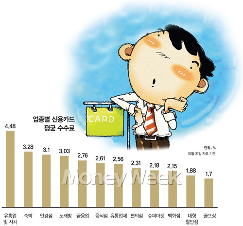 더 큰 문제는 가맹점과 일일이 계약을 맺지 않고 가맹본사가 카드사와 계약을 맺는 경우다. 예컨대 편의점 업종은 통상 본사가 나서서 가맹점 수수료율을 결정하고 개별 가맹점에 통보하는 방식이다. 신용카드사와 수수료율을 두고 협상 중인 A편의점 관계자는 "현재 1.8%인 수수료율이 2% 수준으로 높아질 것으로 보인다"고 말했다.