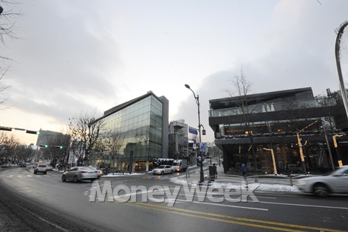 불과 몇십 미터 인근 739-36 외 1필지는 제일모직 소유다. 삼성화재가 갖고 있던 곳을 2010년 12월 제일모직이 사들였다. 당시 매입가격은 105억원이다. 4층짜리 신축건물을 올해 8월 완공해 현재 뉴욕에서 시작된 멀티숍브랜드 '블리커' 매장으로 활용하고 있다.