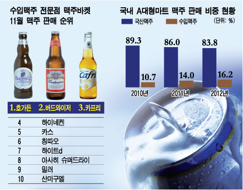 수입맥주가 꾸준히 연간 2~3%p 씩 비중을 높이고 있지만 아직 국산맥주는 수입맥주에 비해 수적 열세에도 불구, 건재하다. 더욱이 잘 팔린다는 수입맥주도 호가든 정도를 제외하면 대부분 국산맥주와 똑같은 라거 맥주다. 호가든도 사실 오비맥주 광주공장에서 만든 것이다.