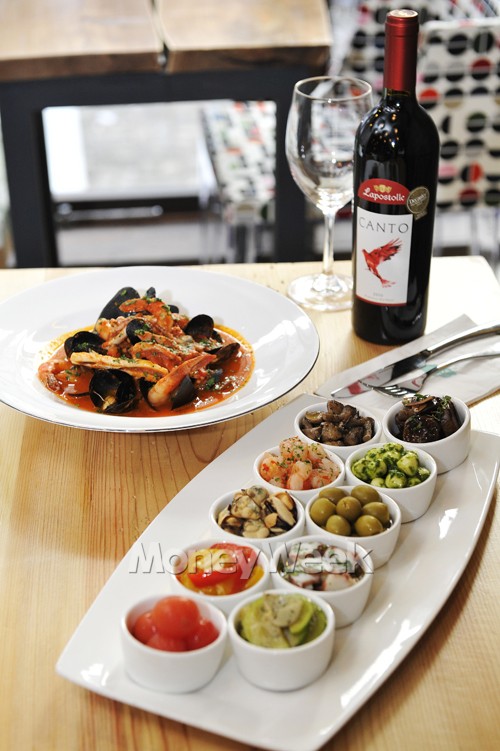 이탈리안 안티파스토는 호우의 대표 메뉴라고 할 수 있다. 안티파스토란 본래 전식 요리를 뜻하는데 그에 걸맞게 가볍게 곁들이기 좋은 것들로 구성해 대략 9가지 정도 제공된다. 종류로는 새우칵테일, 홍합피클, 발사믹식초에 절인 가지 등을 비롯해 토마토, 문어, 올리브 등이 고루 나온다.