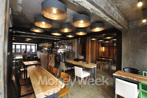 주택을 개조해 만든 공간은 전체적으로 거칠면서도 자연스러운 분위기를 자아낸다. 이곳의 모든 인테리어는 모두 직접 만들어낸 DIY(do it yourself) 스타일이다. 양철통을 연상시키는 천장 조명이나 빼뚜름하게 잘라 만든 테이블 등 모두 주인장의 손길이 닿은 것들이다.