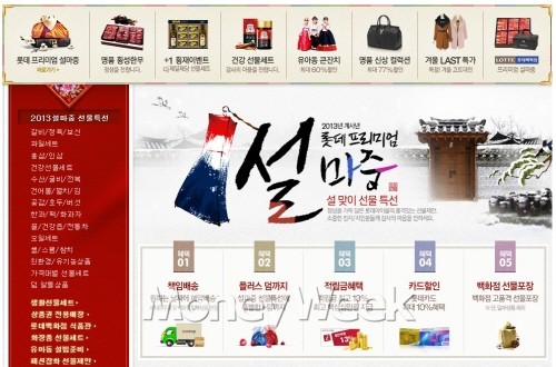 한편, 롯데홈쇼핑 인터넷쇼핑몰 롯데아이몰(www.lotteimall.com) 역시 명절을 앞두고 ‘롯데아이몰 프리미엄 설마중’ 기획전을 열고, 오는 2월 7일(목)까지 한우, 과일세트, 설빔 등 설 선물세트를 할인 가격에 판매한다. 또한 구매금액의 최고 13% 적립금 제공, 카드사별 최대 7% 청구 할인 등의 혜택도 제공한다.