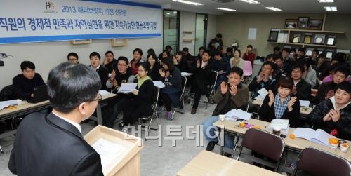 24일 프랜차이즈업계에 따르면 음식점 체인점 해피브릿지는 21일 창립총회를 열어 3년 이상 근속 직원 67명을 조합원으로 하는 직원협동조합을 설립했다.