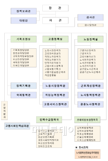 2010년 고용노동부 탄생 이후 첫 직제개편...3실, 2국, 12관, 36과, 1단으로 확대