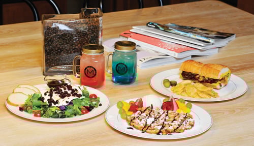 리코타치즈 샐러드도 추천 메뉴 중 하나다. 뽀얀 치즈가 샐러드에 곁들여지고 위에는 크랜베리가 올라가 상큼하면서도 깔끔하게 즐기기 좋다. 필리치즈스테이크는 두툼한 바게트 빵 안에 달달 볶은 소고기와 녹진한 치즈소스가 가미된 것으로 감자칩까지 더해져 풍족함을 선사한다.