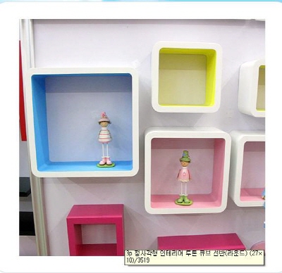 액자처럼 걸어서 사용할 수 있는 다양한 색상의 미니 선반을 벽에 부착해 작은 소품이나 아이템을 진열함으로써 아기자기하면서도 수납공간이 넉넉한 방 안을 연출할 수 있다.
