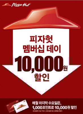 피자헛은 멤버십 가입 고객을 대상으로 매월 마지막 주 수요일 멤버십데이를 통해 전국 피자헛 매장과 배달 주문으로 3만원 이상 구매 시 1000포인트 차감으로 1만원 할인 혜택을 제공한다.