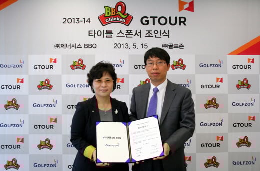 '골프존'과 '제너시스BBQ'는 지난 15일 골프존타워 '2013-14시즌 GTOUR 타이틀 스폰서 조인식'을 갖고, 대회 공식 명칭을 ‘2013-14 비비큐치킨 GTOUR’로 확정했다고 밝혔다.