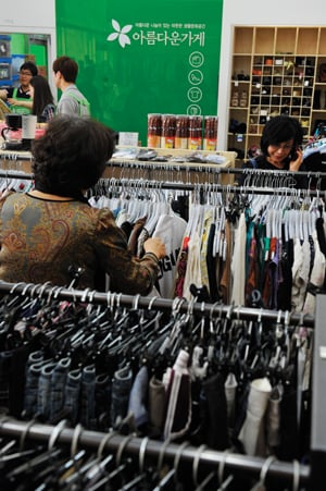 싸게 사는 기쁨과 함께 기부하는 뿌듯함을 동시에 느낄 수 있는 중고매장도 인기다. 바로 2002년에 설립된 비영리공익재단인 '아름다운가게'다.