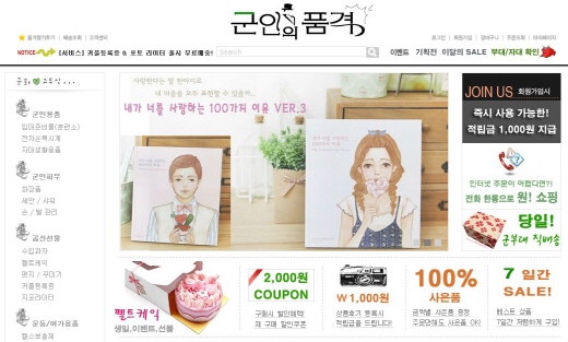 대표적인 쇼핑몰로 군인 관련 용품만 전문적으로 판매하는 ‘군인의 품격(www.gunpoom.co.kr)이 있다. ‘군인의 품격’을 운영 중인 10년지기 친구 윤성완(28),양은수(28) 공동 대표는 각각 공군과 육군을 전역한 예비역 CEO.