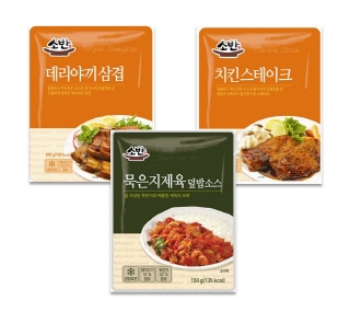 새롭게 출시되는 제품은 묵은지제육덮밥 소스(150g, 2300원), 치킨 스테이크(125g, 3000원), 데리야끼삼겹(120g, 3000원) 등 총 3종이다.