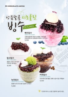 이번 디초콜릿커피가 새롭게 선보이는 빙수는 100% 국내산 팥만 사용한 프리미엄빙수로 베리빙수와 밀크빙수, 커피빙수, 녹차빙수 등 총 4종이다.