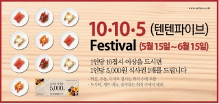 텐텐파이브 프로모션은 오는 6월 15일까지 한 달간 진행되며, 모든 스시 접시를 포함해 디저트, 튀김, 샐러드를 1인당 10접시 이상 먹은 고객에게 5천원 식사권을 제공한다.