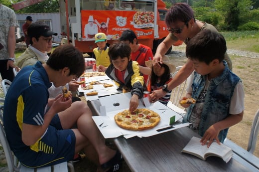 이번 피자파티는 매번 야외활동으로 고생하는 ‘아빠! 어디가?’팀의 스텝과 아들 준이의 친구들을 위해 피자마루의 모델인 배우 성동일씨가 준비한 것으로 피자마루의 협조로 이루어졌다.