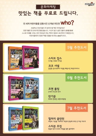 추천도서로 선정된 ‘WHO 시리즈’는 세계인물 교양만화로 오바마, 빌 게이츠, 조앤 롤링, 스티브 잡스 등 어린이들이 닮고 싶어하는 롤 모델을 그려낸 어린이 도서다.