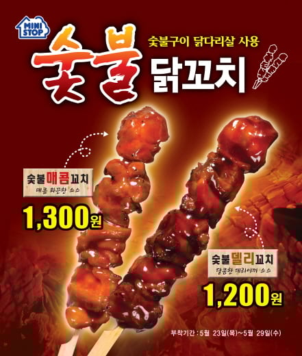 미니스톱이 직접 숯불에 구운 “숯불 닭꼬치” 2종을 신상품으로 출시했다.