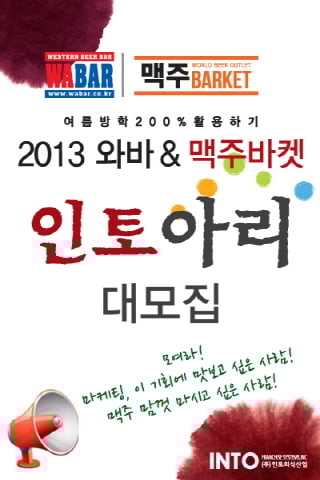 세계맥주전문점 ‘와바’와 ‘맥주바켓’의 가맹사업을 진행하고 있는 ㈜인토외식산업(대표 이효복)에서 마케팅 서포터즈 ‘2013 인토아리’를 모집한다.