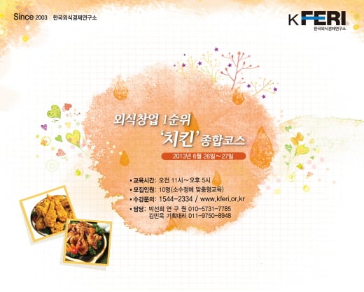 6월 26일부터는 2일간 ‘치킨 종합코스’가 진행된다. 후라이드, 파닭, 양파치킨 등을 비롯해 각종 소스와 드레싱, 치킨무 등 치킨전문점 창업에 필수적인 조리실습이 뒤따른다.