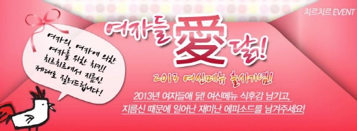 한편 치르치르는 ‘여자들애(愛) 닭’ 신메뉴 출시를 기념하여 리치푸드㈜ 공식 페이스북(www.facebook.com/richfood)에서 ‘치르치르 지름신(神), 맘껏 질러라~’ 이벤트를 진행 중이다.