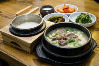 사골과 잡뼈를 8대2의 비율로 넣고 서너 번 끓인 육수에 큼직한 갈빗대 3~4개, 부드럽게 삶은 한우고기로 전체 식사 메뉴 중 판매율이 70~80% 차지한다.