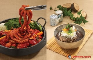 국물 없이 깔끔하게 즐기는 '낙지닭갈비철판구이'는 쫄깃한 낙지와 담백한 닭갈비를 한 번에 맛 볼 수 있는 메뉴다. 놀부 특제 매콤달콤한 소스가 매우면서도 감질 맛을 내 여름철 무더위를 잊게 한다.