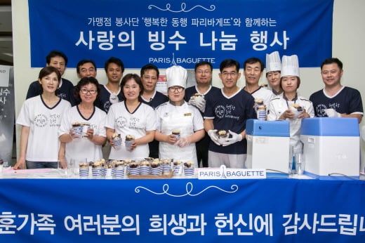 프랜차이즈 베이커리 전문 브랜드인 '파리바게뜨'의 가맹점 봉사단체인 ‘행복한 동행 파리바게뜨’가 지난 27일 보훈병원을 방문, 국가유공자와 보훈가족들에게 감사의 마음을 전하는 ‘사랑의 빙수 나눔 행사’를 가졌다.