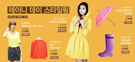 이에 장마기간을 겨냥한 비 관련 상품이나 온라인 쇼핑몰들의 세일도 눈여겨 볼만하다.